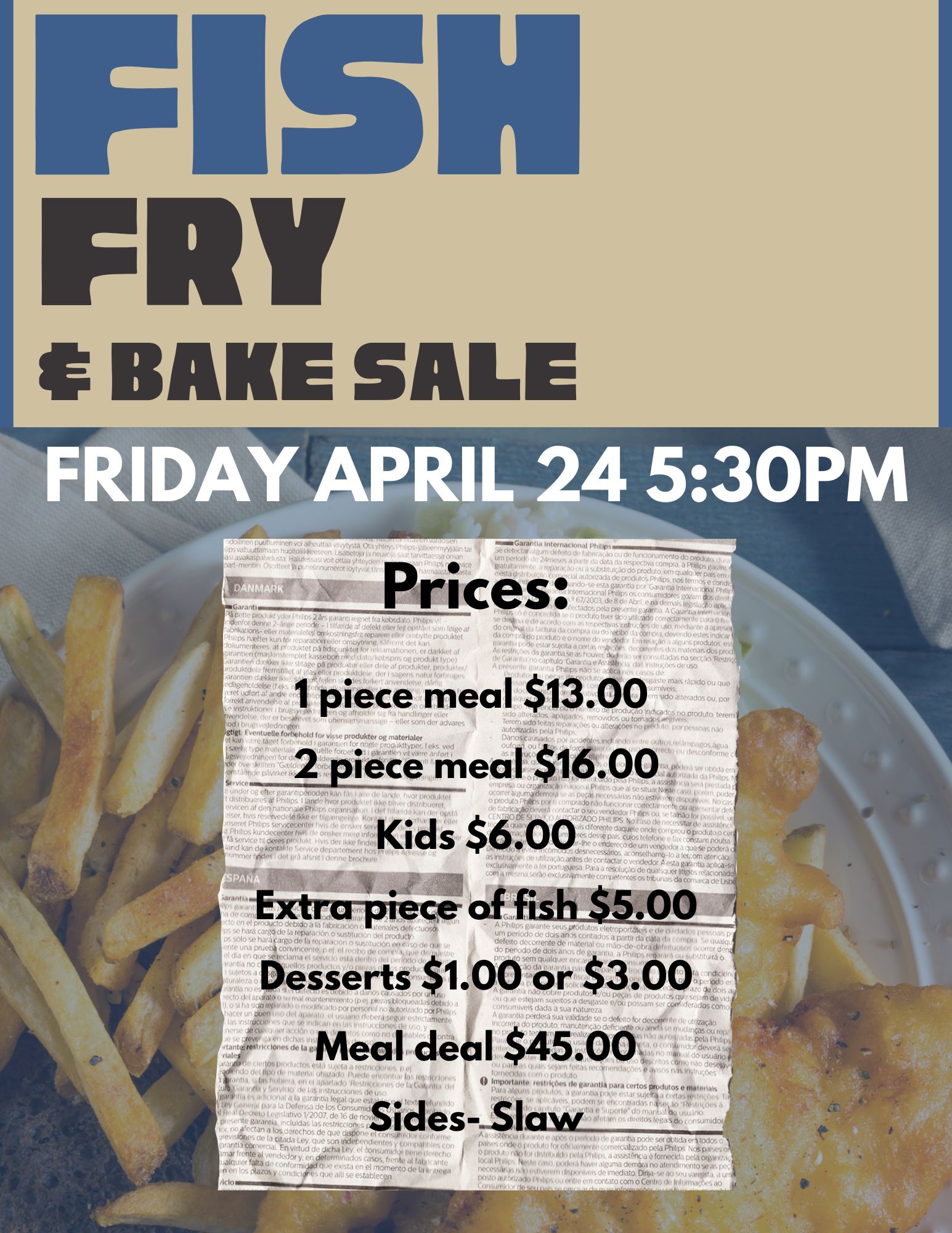 Fish Fry and Bake Sale April 24 at 5:30pm