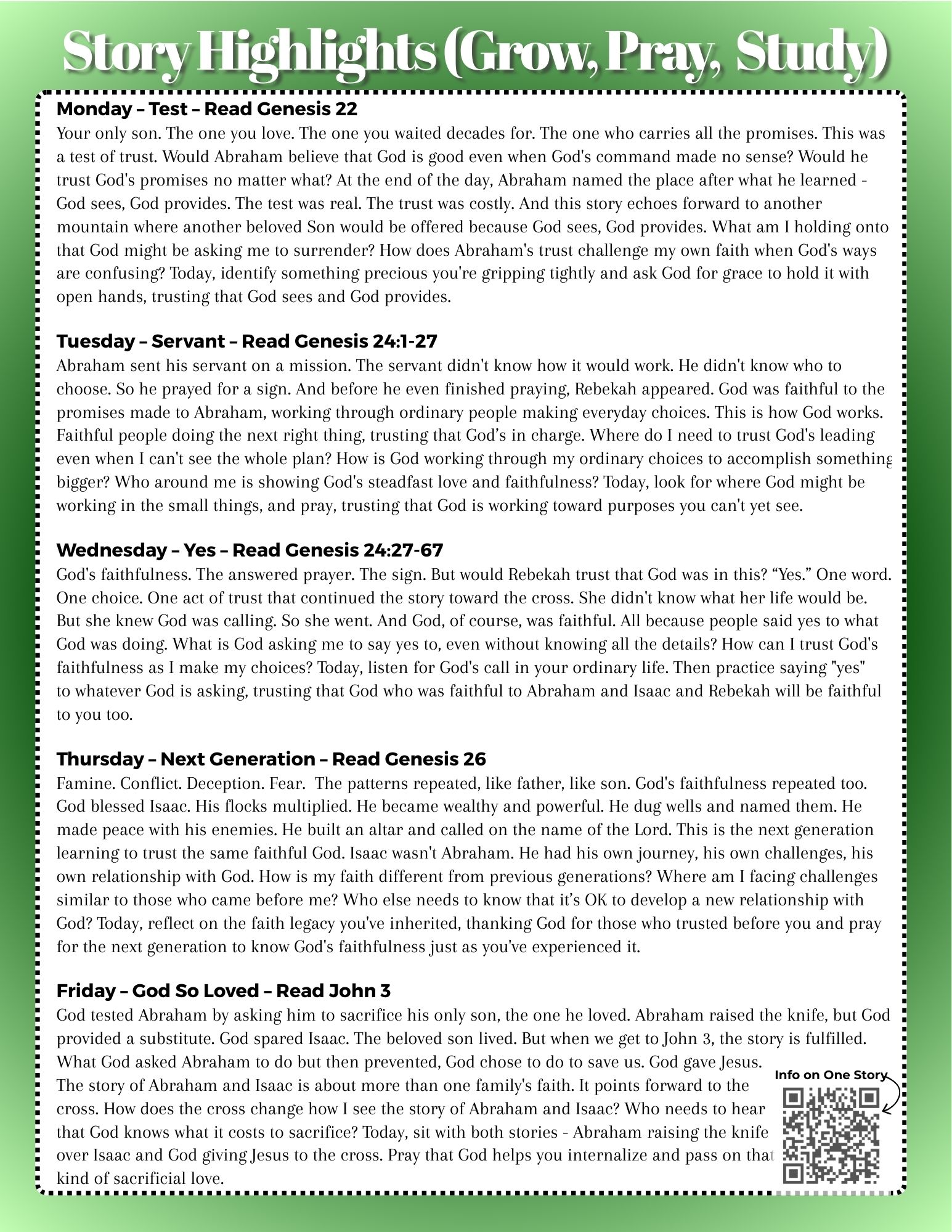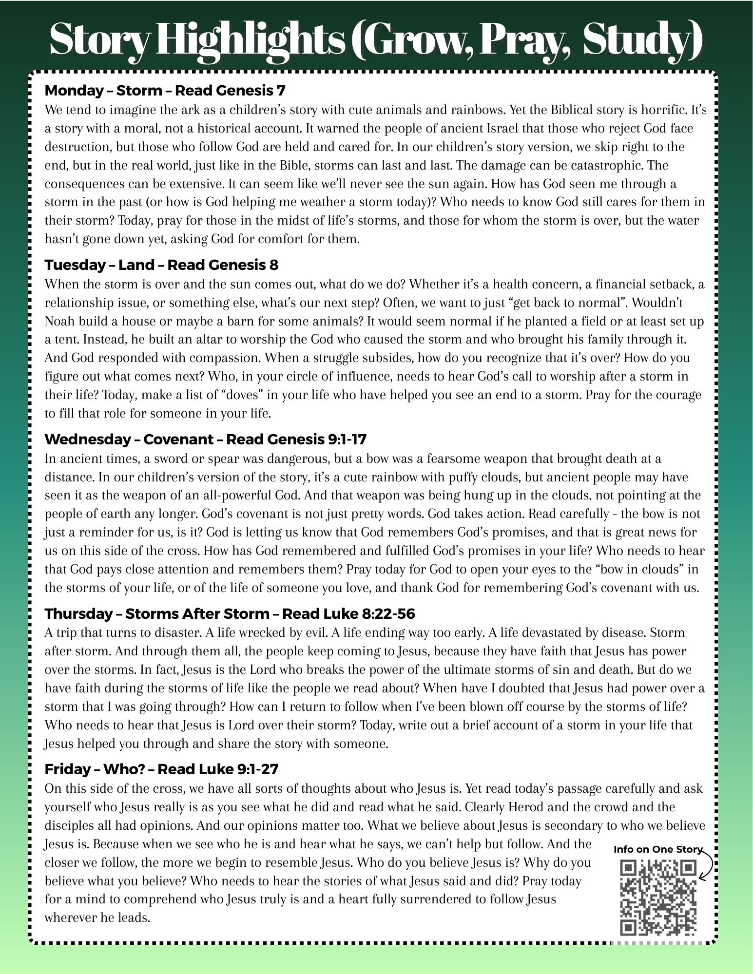 In Sunday evening youth group, we'll be working with the same parts of Scripture as well. We hope the whole family can share about God's Story. Contact Pastor Connor for more information