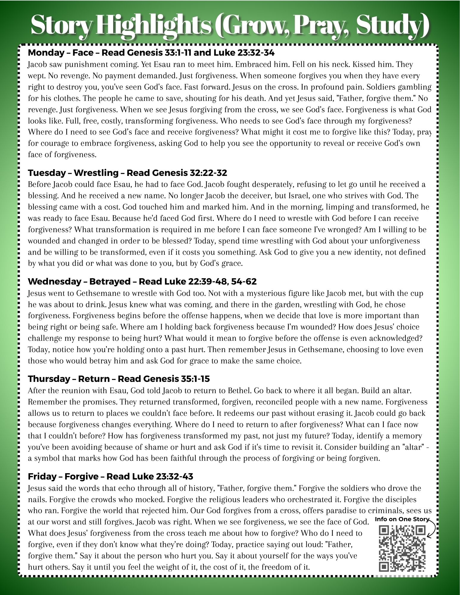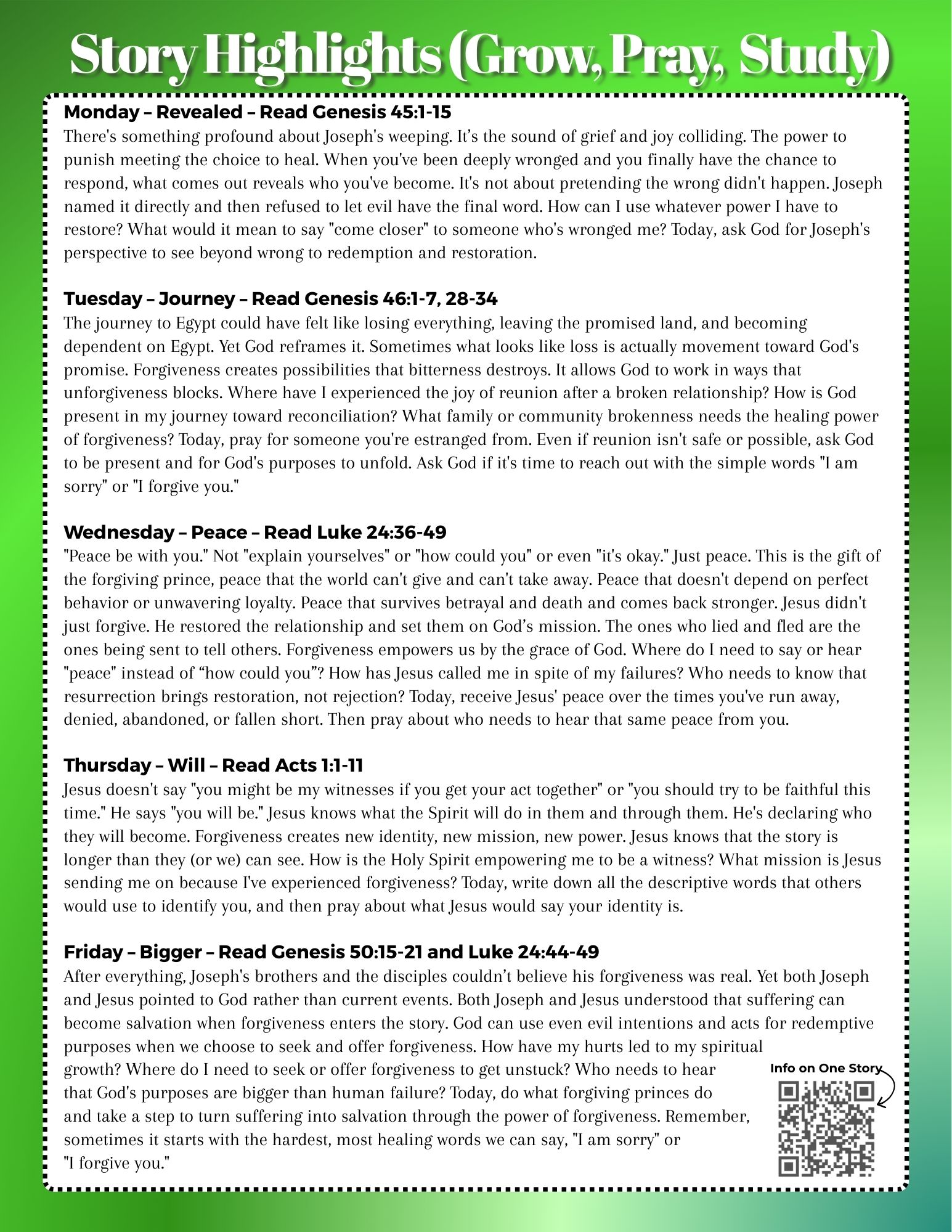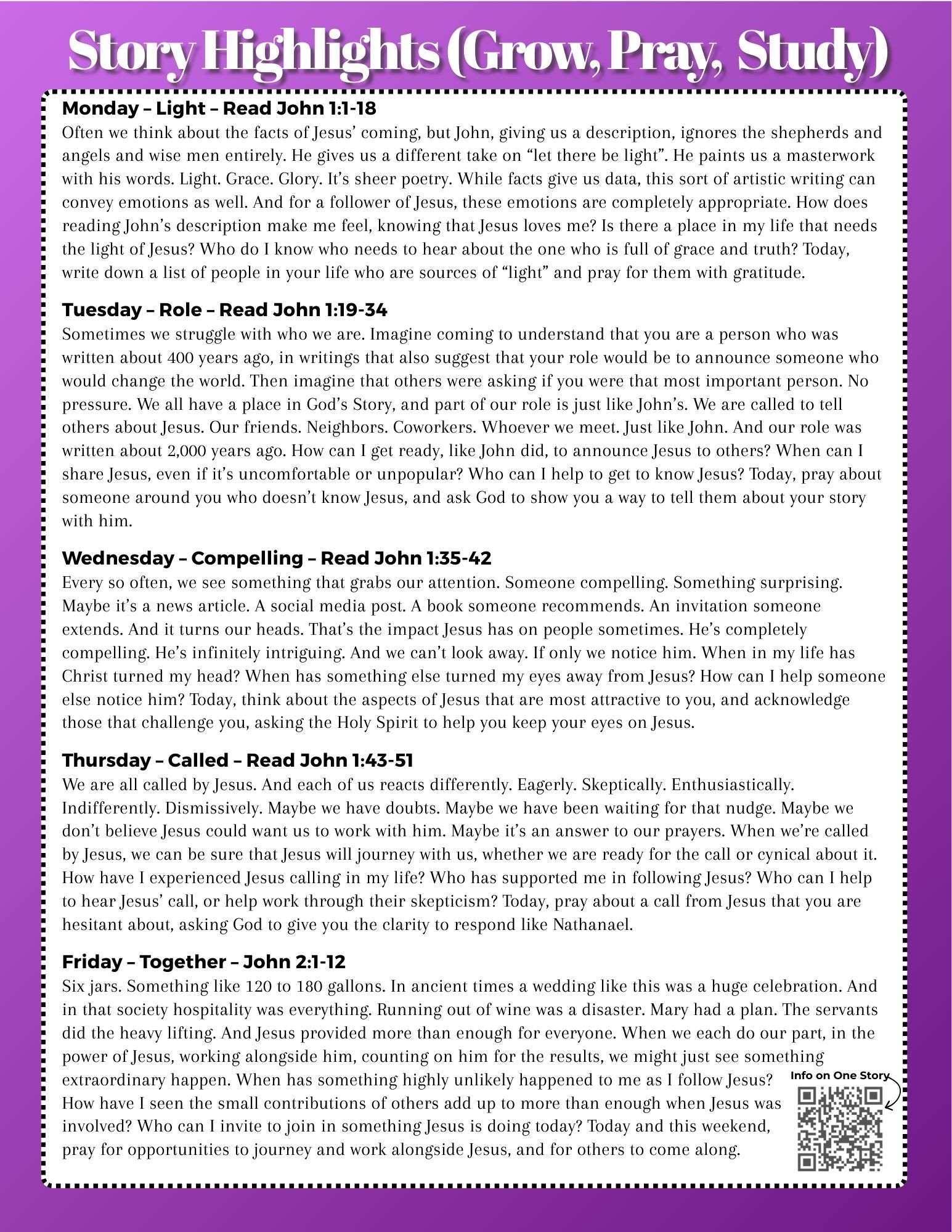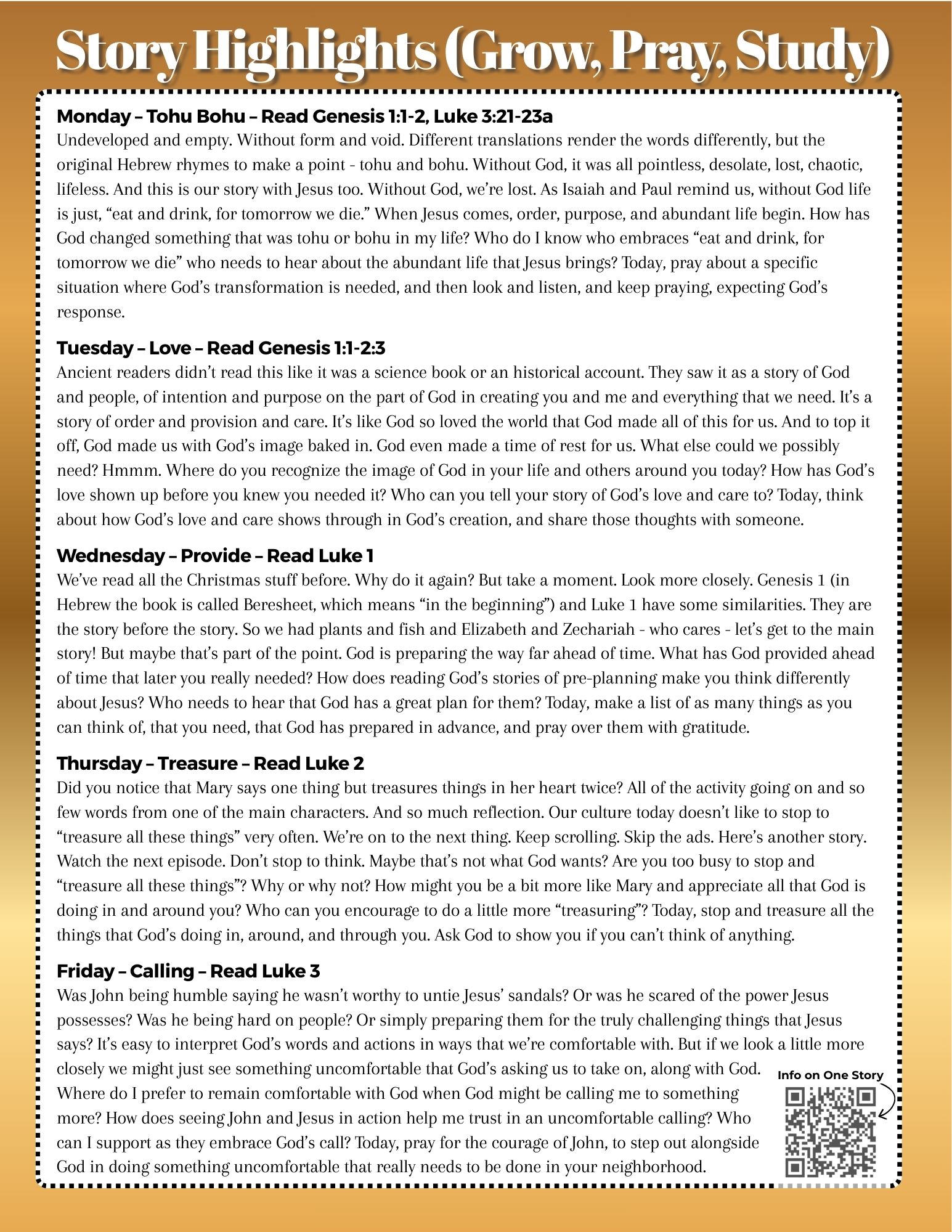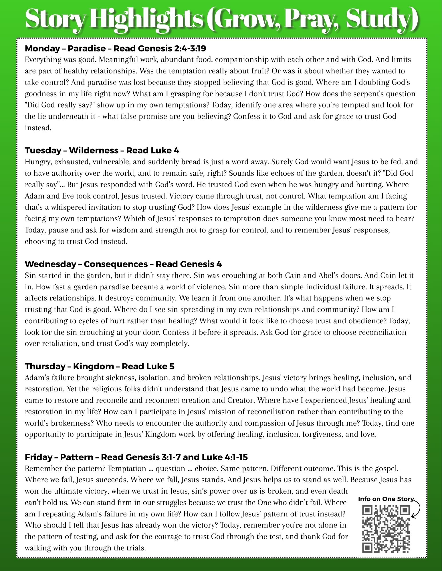 Our weekly devotional guide to grow, pray, and study is focused on the parts of the Bible that we're talking about on Sunday. Keep the worship going all week! Contact Pastor Russ for more info.